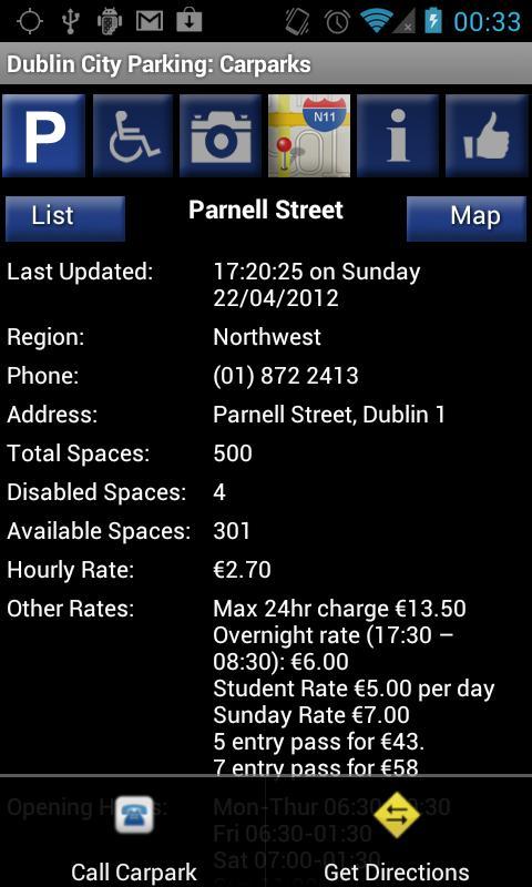 Dublin City Parking bietet bis zu den winzigen Informationen zum Parken im Stadtzentrum von Dublin. Die Funktionen umfassen:
